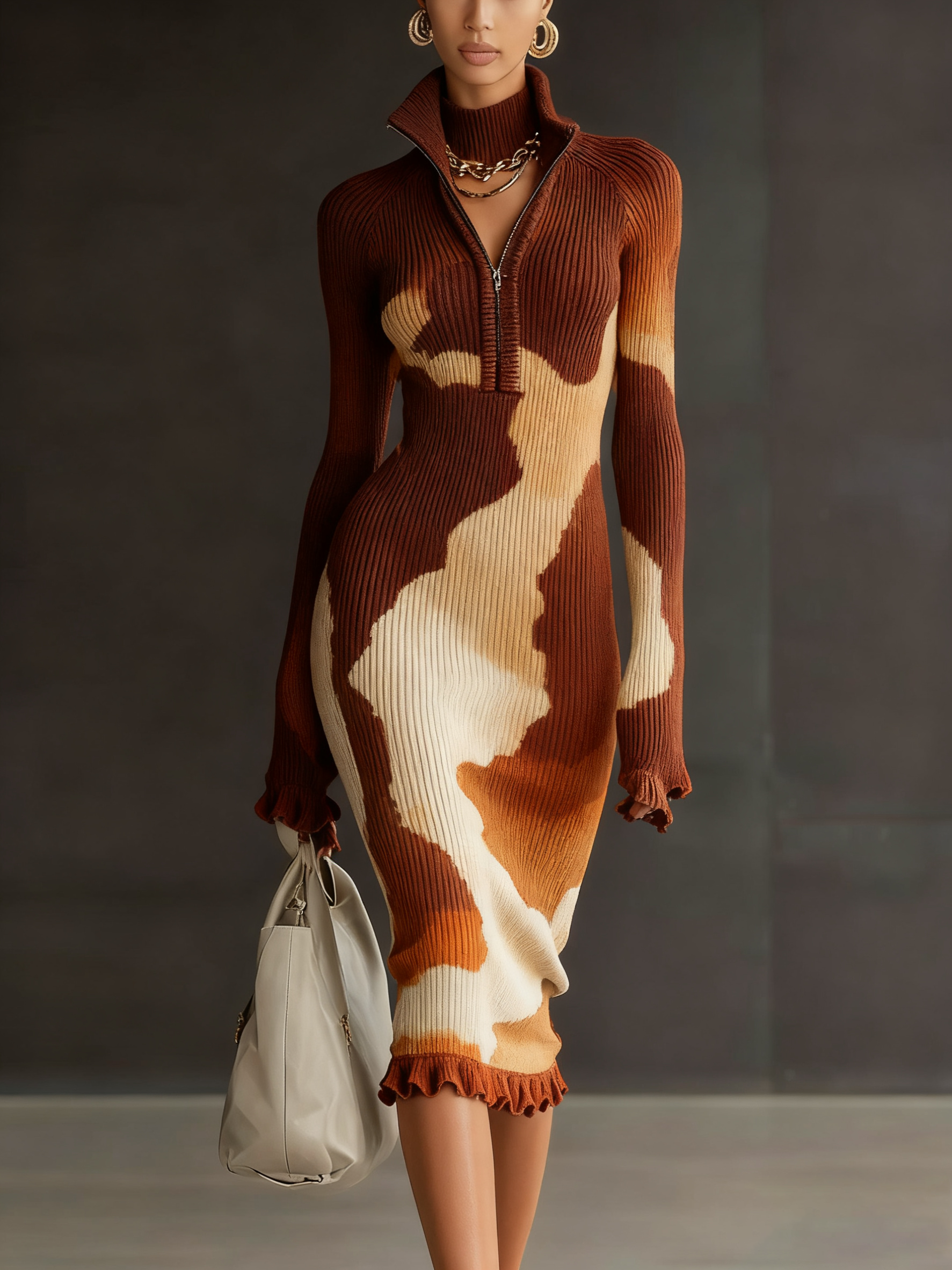 Retro Urban Fashion Turtleneck Knitted Maxi Dress