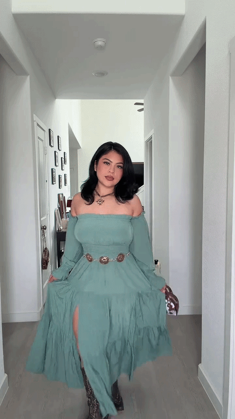 ✨ Elegant Off-Shoulder Design ✨This dress features a chic off-shoulder neckline, perfect for showcasing your charming shoulders and delicate collarbone. The puff/lantern sleeves add a touch of elegance, while the high split design ensures a stylish look.