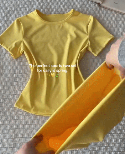 Your summer fitness uniform has arrived—and it's a matching set! ☀️💪 This solid color tee and high-waist skinny shorts tracksuit is giving all the right vibes: sporty, chic, and ridiculously comfortable.