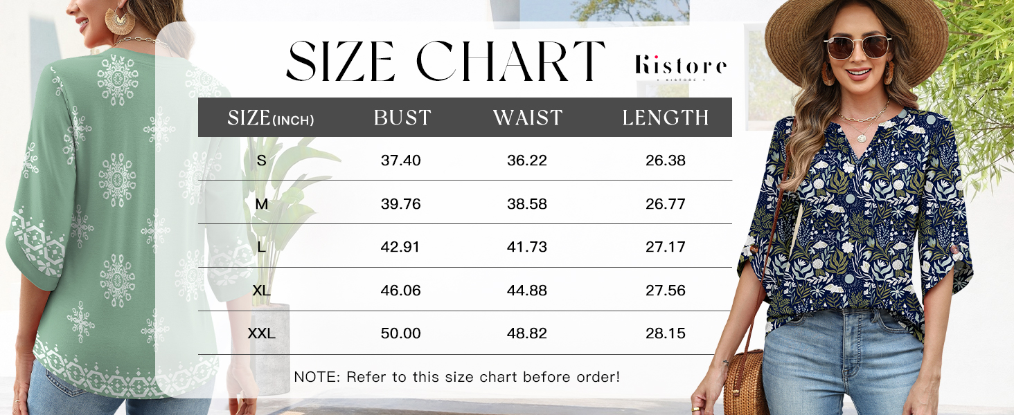 Soft Material: This 3/4 length sleeves womens tops is made of lightweight and breathable 60% polyester, 35% rayon, 5% spandex fabric with stretch, providing good coverage and flexibility, allowing you to move in a full range of motion and stay comfortable all day. It is a must-have fashion item in your wardrobe all year round.