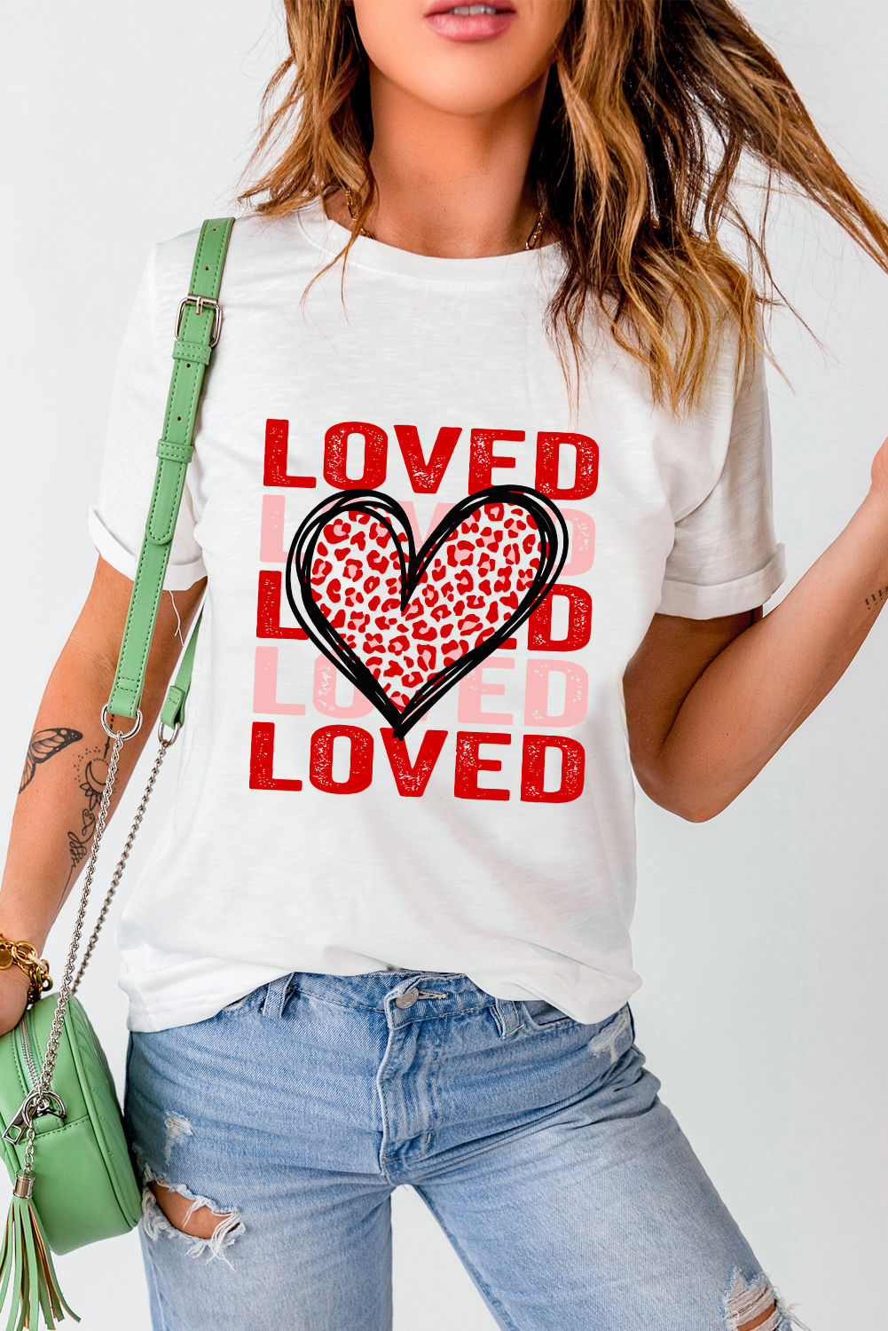 LOVE script adds a romantic touch to this eye-catching tee.