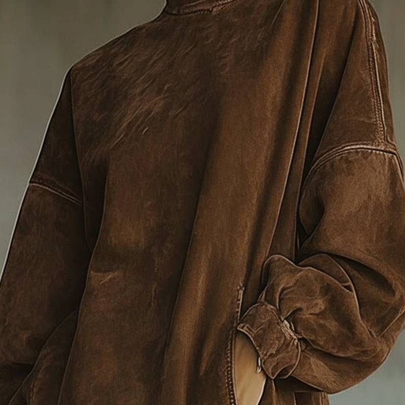 • Design Elements: High neck, fringed hem, and distinctive sleeve cutouts