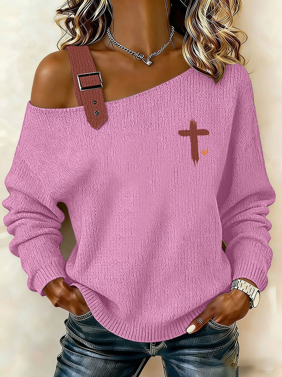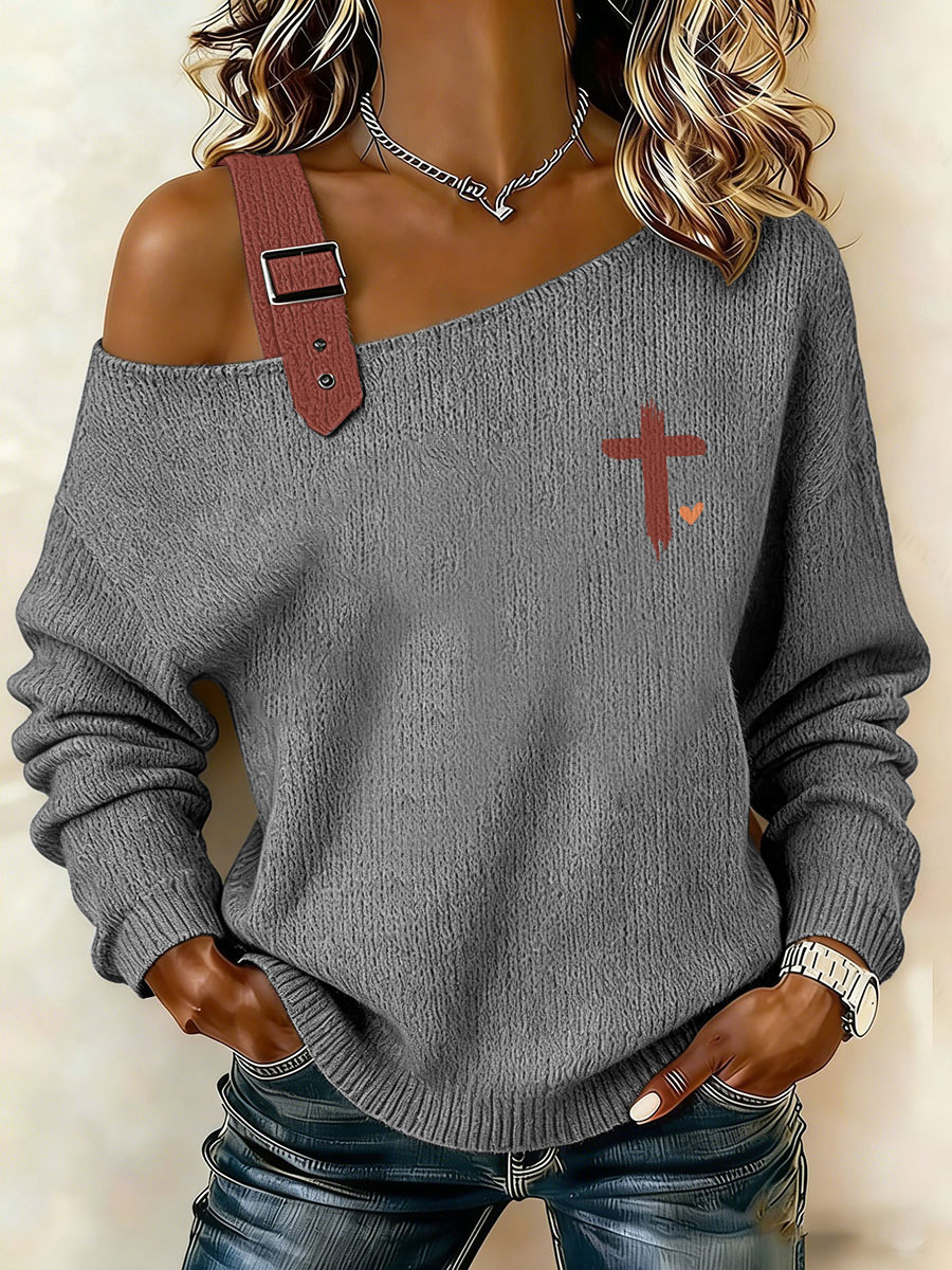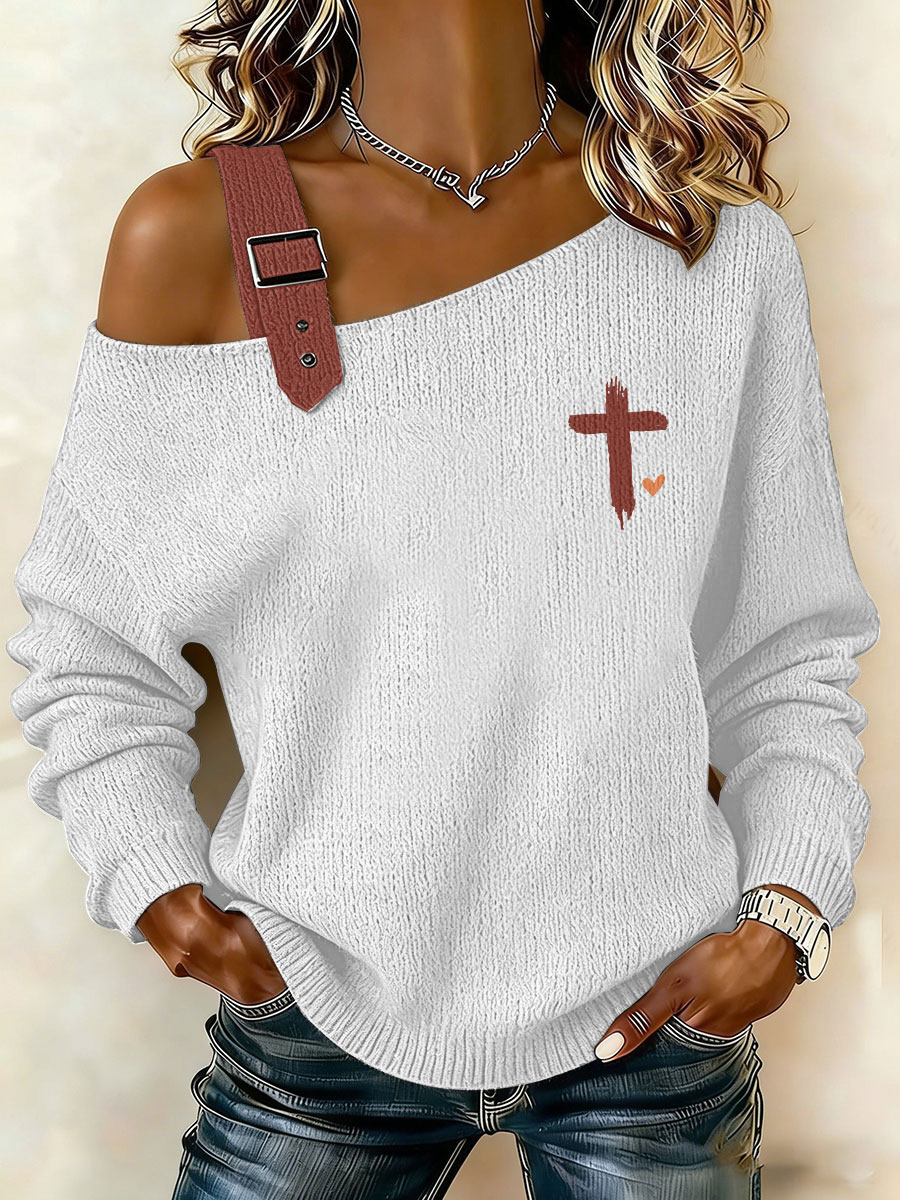 Women's Heart Cross Print Casual Top